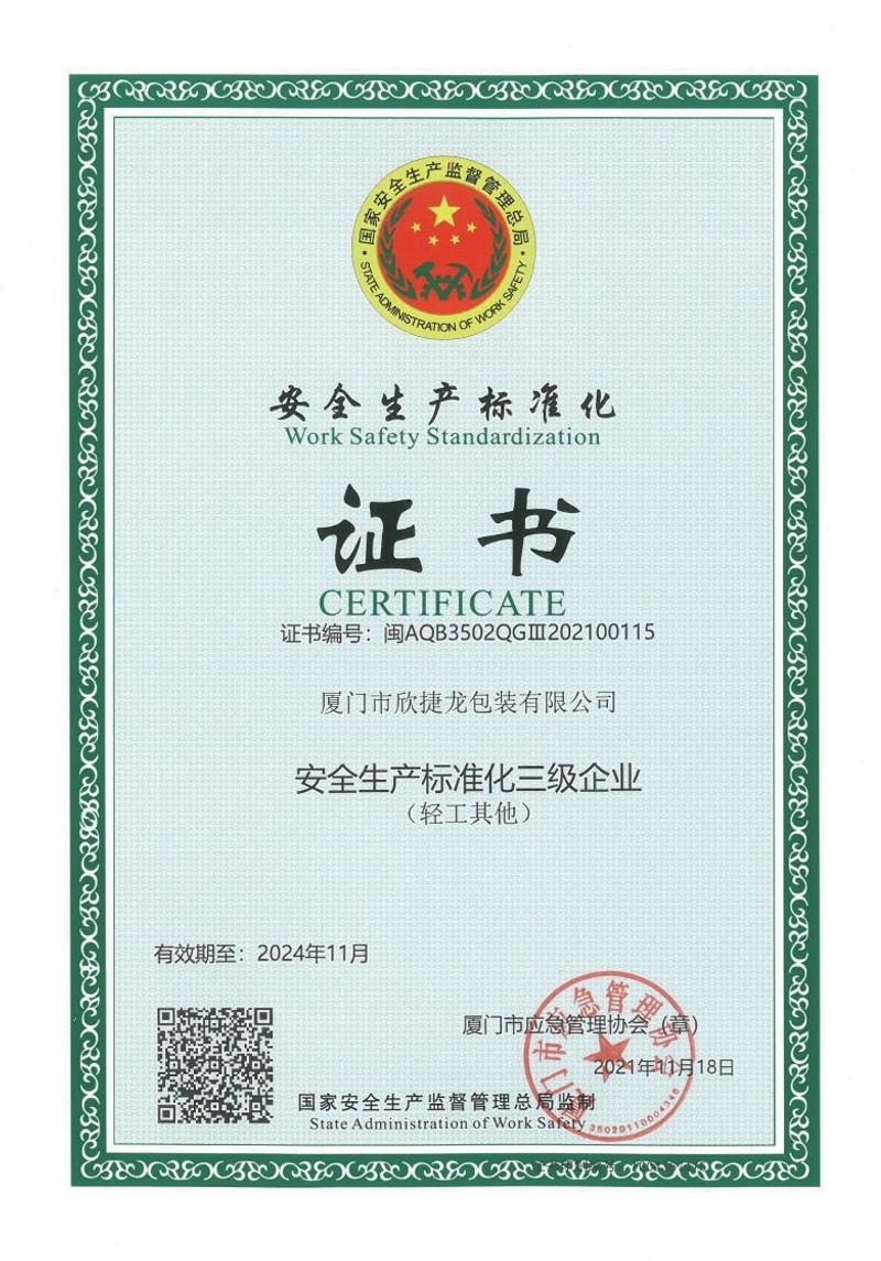 安全生产标准化证书