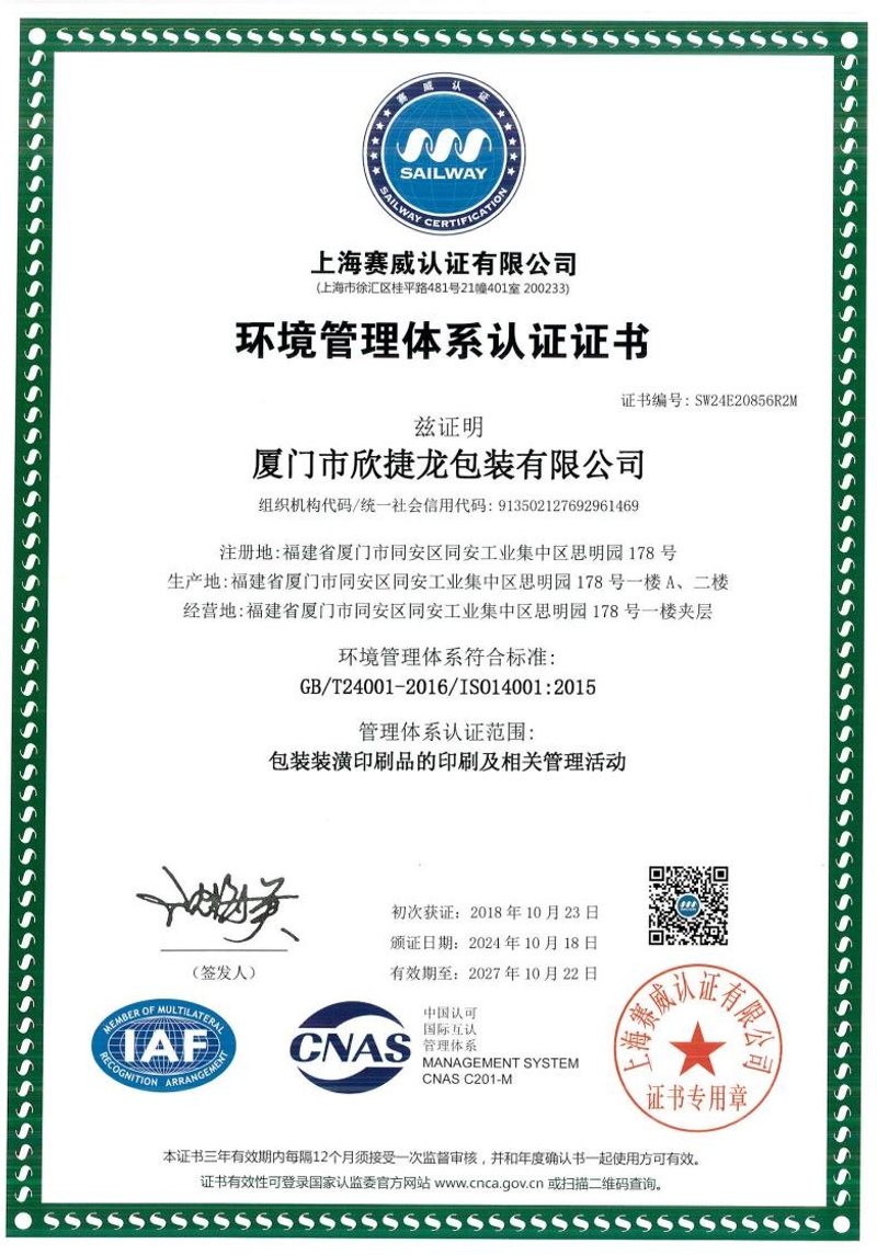 环境管理体系认证证书