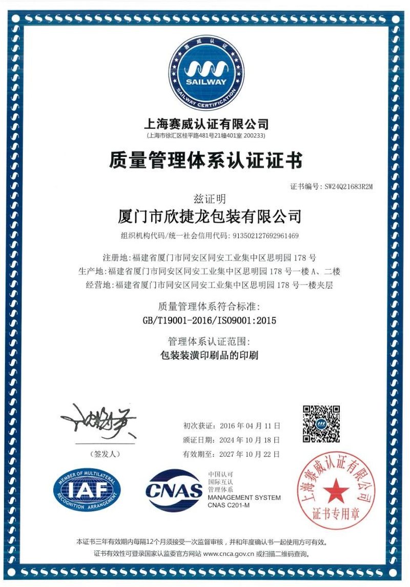 质量管理体系认证证书